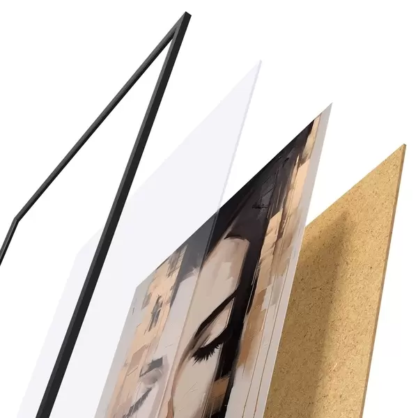 Plagát sa skladá z rámu, plexiskla, vytlačeného obrazu a podkladu z drevotriesky. Plagát možno okamžite zavesiť na stenu vďaka úchytom na zadnej strane.
