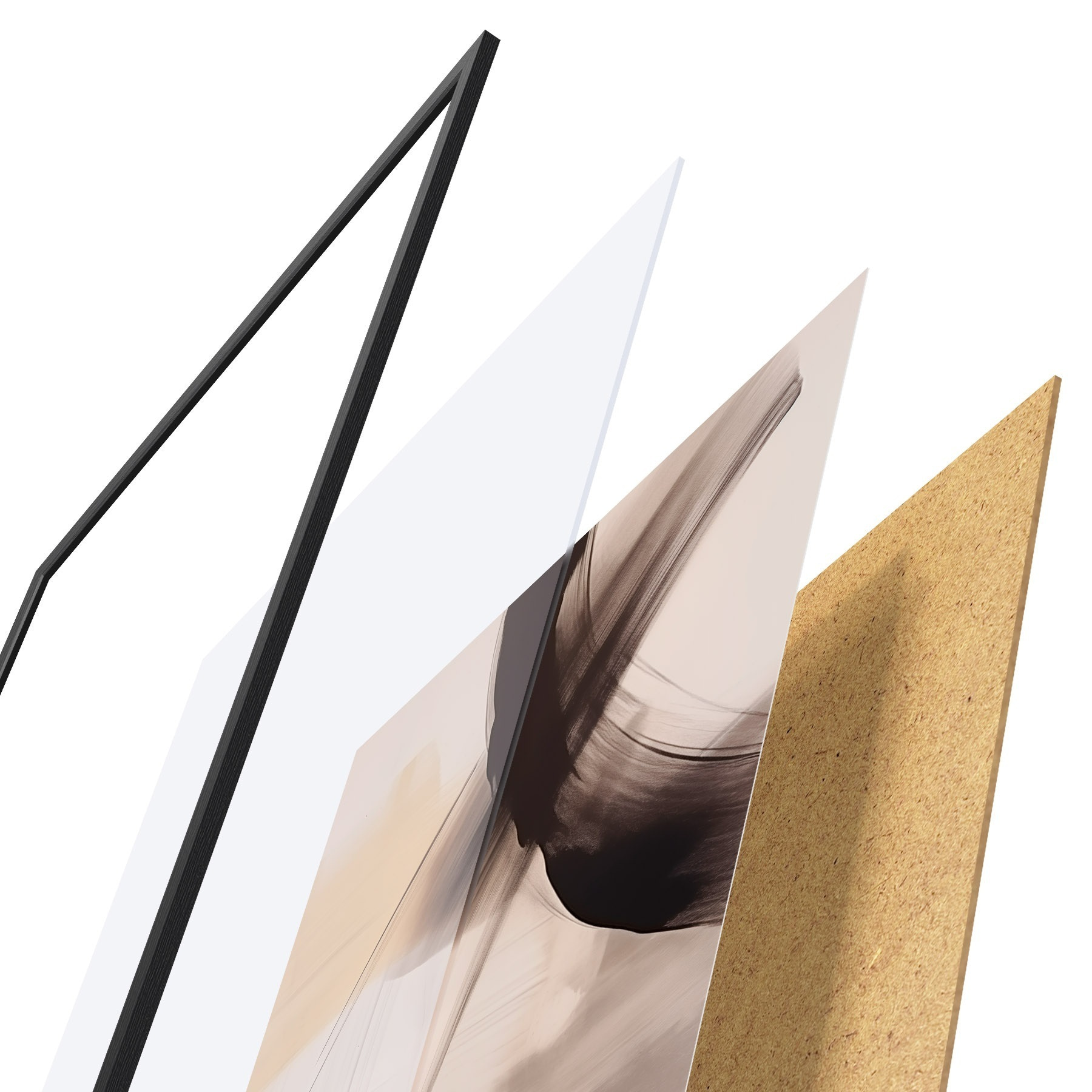 Plagát sa skladá z rámu, plexiskla, vytlačeného obrazu a podkladu z drevotriesky. Plagát možno okamžite zavesiť na stenu vďaka úchytom na zadnej strane.