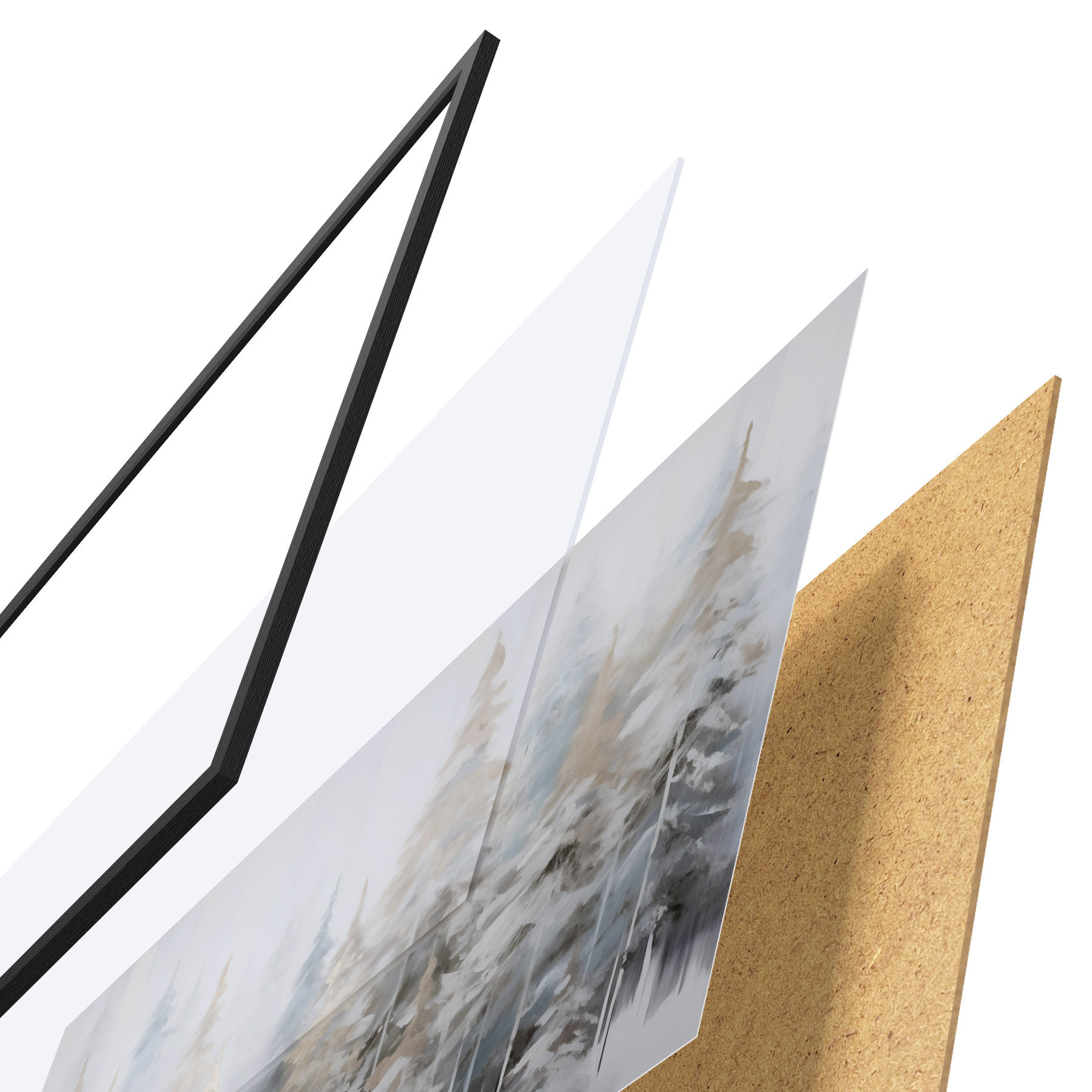 Plagát sa skladá z rámu, plexiskla, vytlačeného obrazu a podkladu z drevotriesky. Plagát možno okamžite zavesiť na stenu vďaka úchytom na zadnej strane.