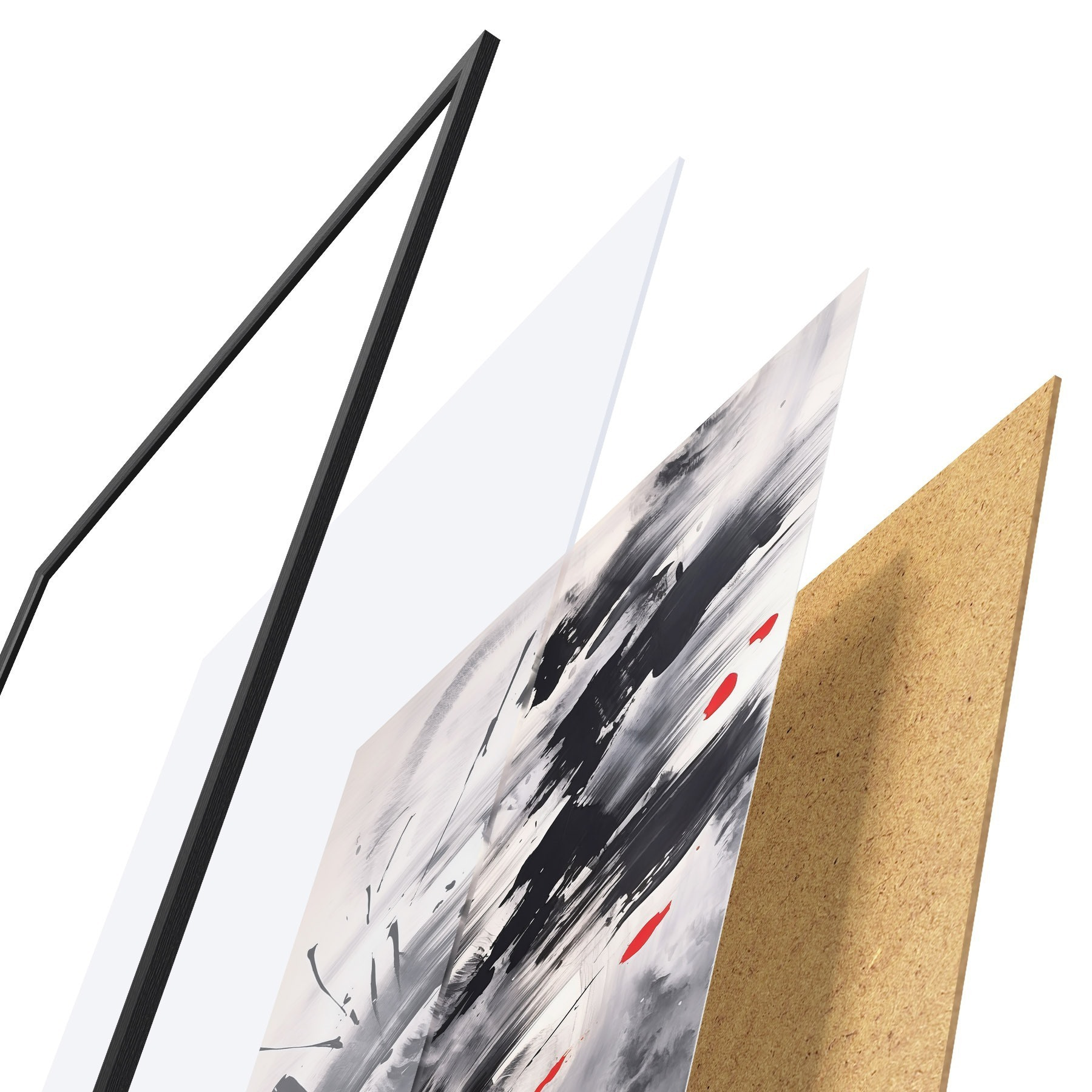 Plagát sa skladá z rámu, plexiskla, vytlačeného obrazu a podkladu z drevotriesky. Plagát možno okamžite zavesiť na stenu vďaka úchytom na zadnej strane.