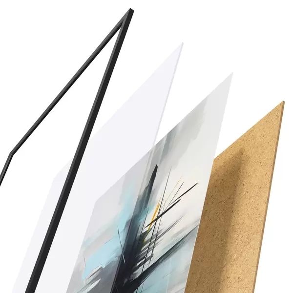 Plagát sa skladá z rámu, plexiskla, vytlačeného obrazu a podkladu z drevotriesky. Plagát možno okamžite zavesiť na stenu vďaka úchytom na zadnej strane.