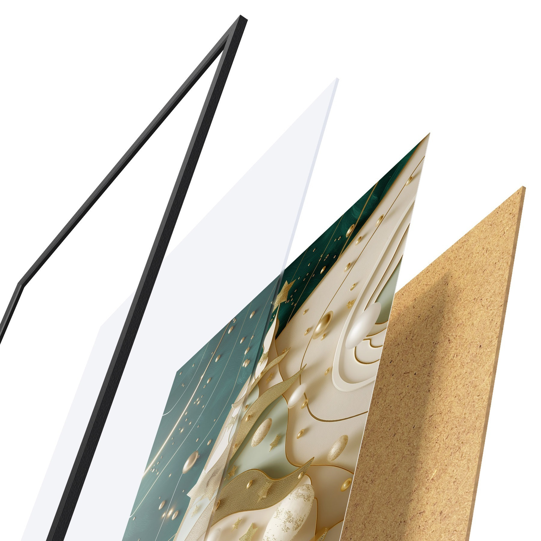 Plagát sa skladá z rámu, plexiskla, vytlačeného obrazu a podkladu z drevotriesky. Plagát možno okamžite zavesiť na stenu vďaka úchytom na zadnej strane.