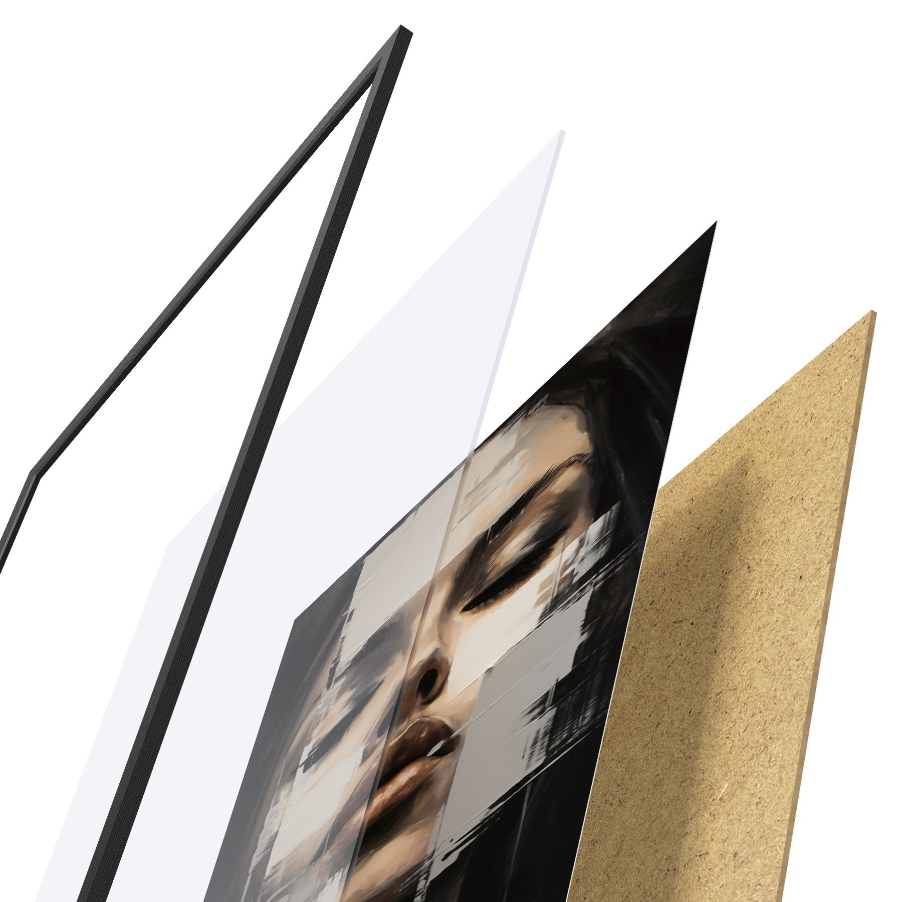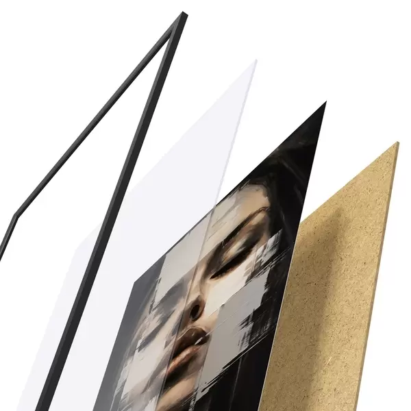 Plagát sa skladá z rámu, plexiskla, vytlačeného obrazu a podkladu z drevotriesky. Plagát možno okamžite zavesiť na stenu vďaka úchytom na zadnej strane.