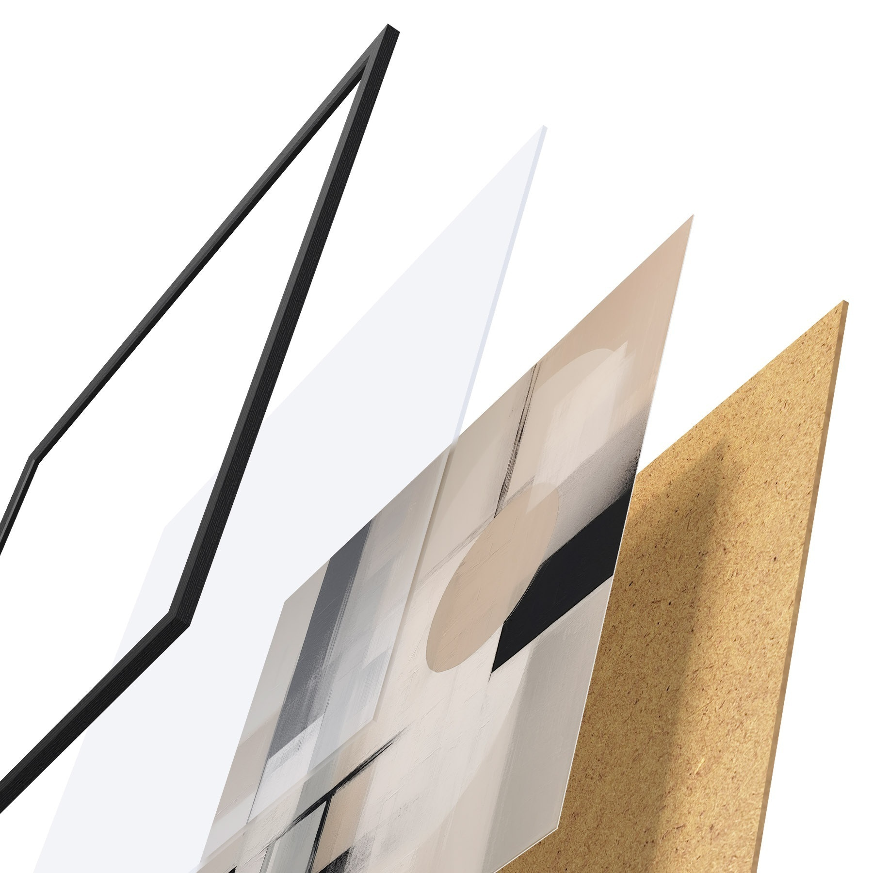 Plagát sa skladá z rámu, plexiskla, vytlačeného obrazu a podkladu z drevotriesky. Plagát možno okamžite zavesiť na stenu vďaka úchytom na zadnej strane.