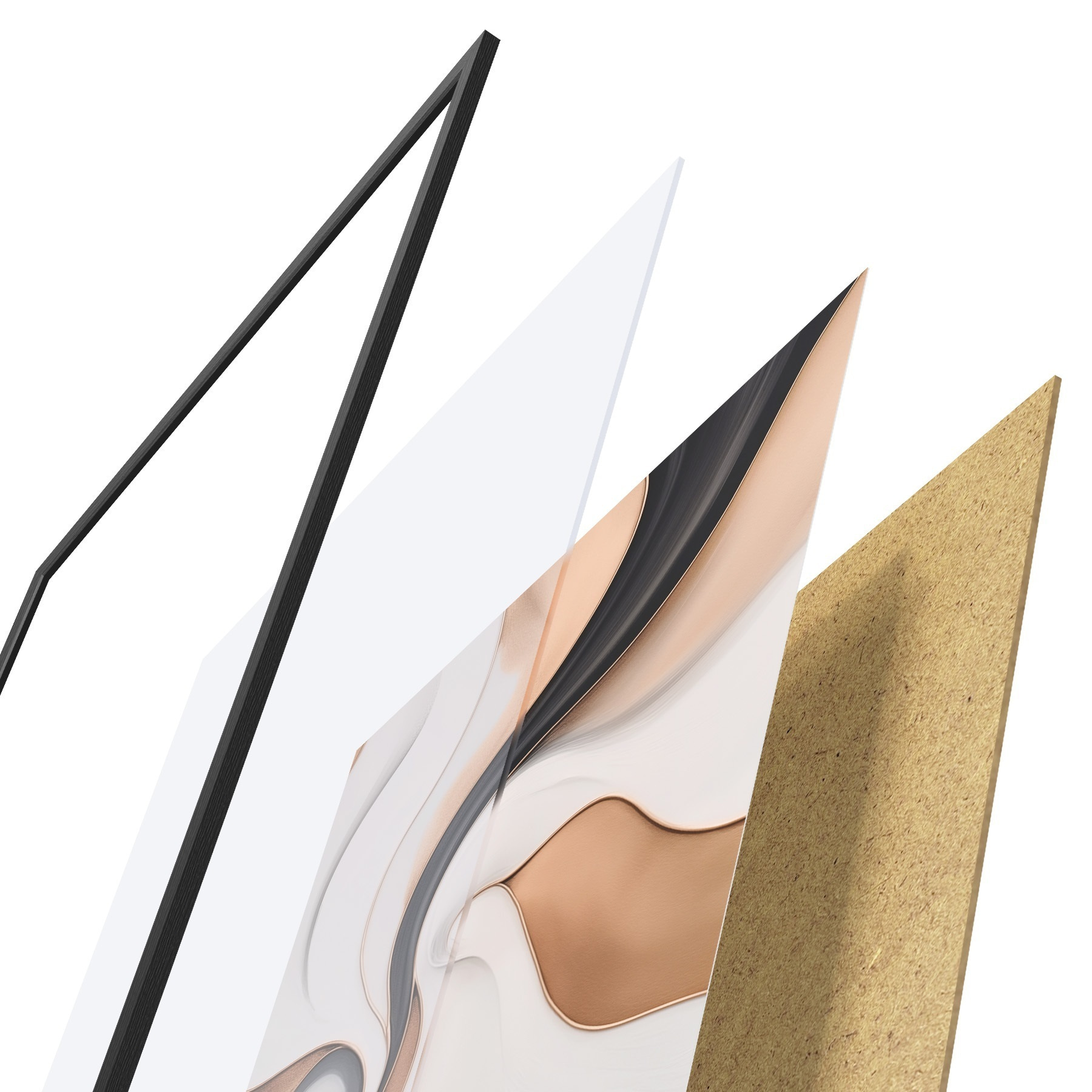Plagát sa skladá z rámu, plexiskla, vytlačeného obrazu a podkladu z drevotriesky. Plagát možno okamžite zavesiť na stenu vďaka úchytom na zadnej strane.