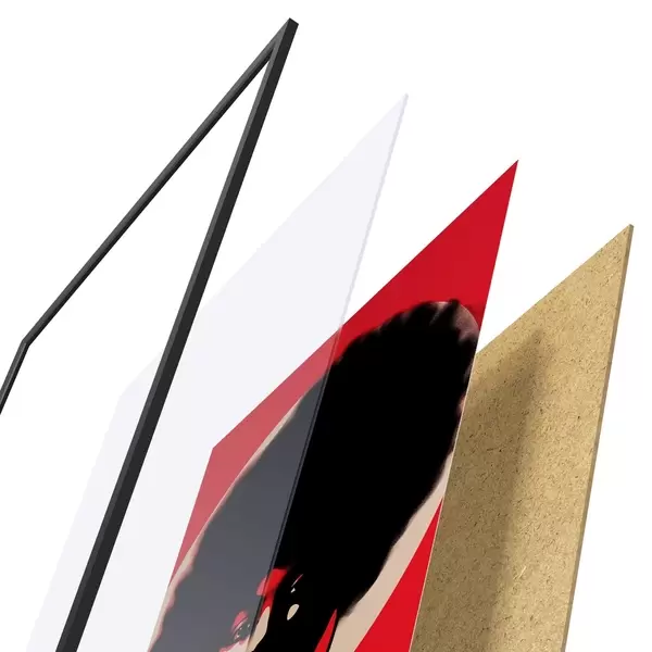 Plagát sa skladá z rámu, plexiskla, vytlačeného obrazu a podkladu z drevotriesky. Plagát možno okamžite zavesiť na stenu vďaka úchytom na zadnej strane.