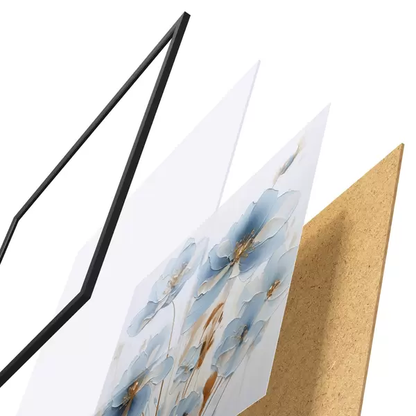 Plagát sa skladá z rámu, plexiskla, vytlačeného obrazu a podkladu z drevotriesky. Plagát možno okamžite zavesiť na stenu vďaka úchytom na zadnej strane.
