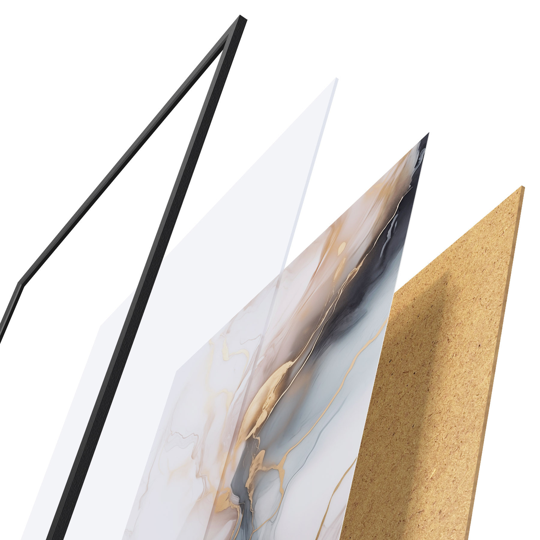 Plagát sa skladá z rámu, plexiskla, vytlačeného obrazu a podkladu z drevotriesky. Plagát možno okamžite zavesiť na stenu vďaka úchytom na zadnej strane.