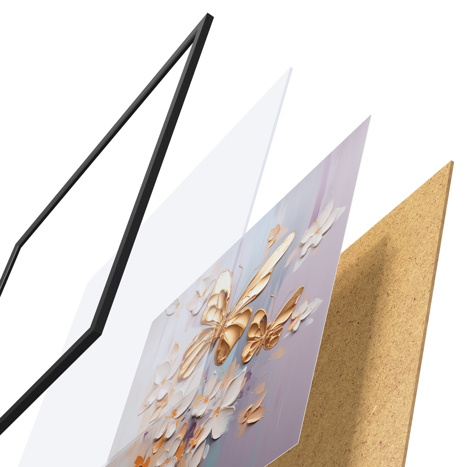 Plagát sa skladá z rámu, plexiskla, vytlačeného obrazu a podkladu z drevotriesky. Plagát možno okamžite zavesiť na stenu vďaka úchytom na zadnej strane.