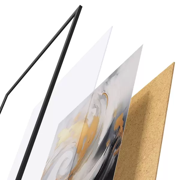 Plagát sa skladá z rámu, plexiskla, vytlačeného obrazu a podkladu z drevotriesky. Plagát možno okamžite zavesiť na stenu vďaka úchytom na zadnej strane.