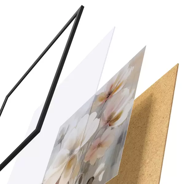 Plagát sa skladá z rámu, plexiskla, vytlačeného obrazu a podkladu z drevotriesky. Plagát možno okamžite zavesiť na stenu vďaka úchytom na zadnej strane.