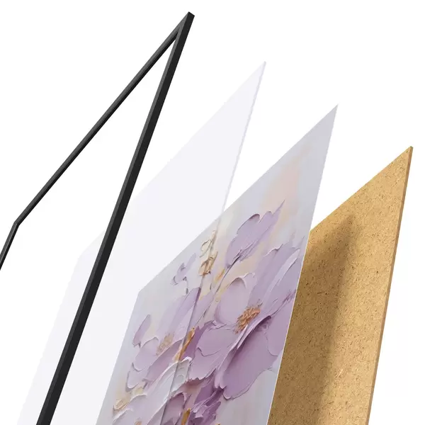 Plagát sa skladá z rámu, plexiskla, vytlačeného obrazu a podkladu z drevotriesky. Plagát možno okamžite zavesiť na stenu vďaka úchytom na zadnej strane.