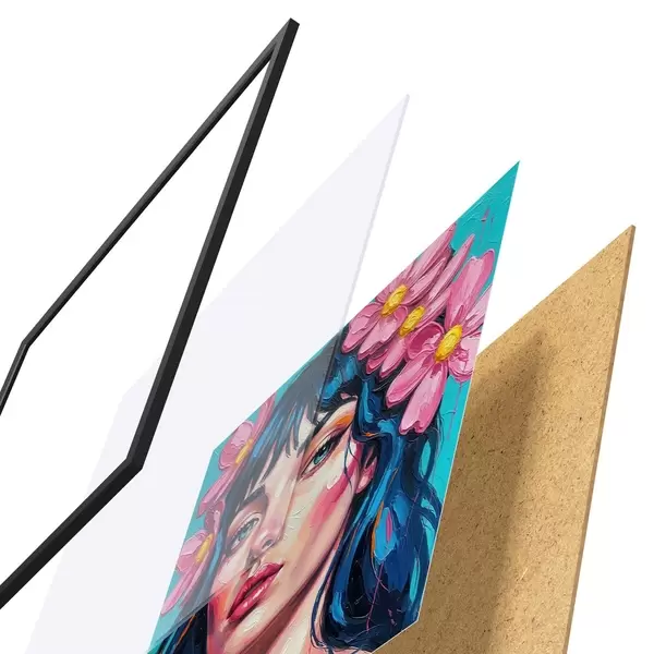 Plagát sa skladá z rámu, plexiskla, vytlačeného obrazu a podkladu z drevotriesky. Plagát možno okamžite zavesiť na stenu vďaka úchytom na zadnej strane.