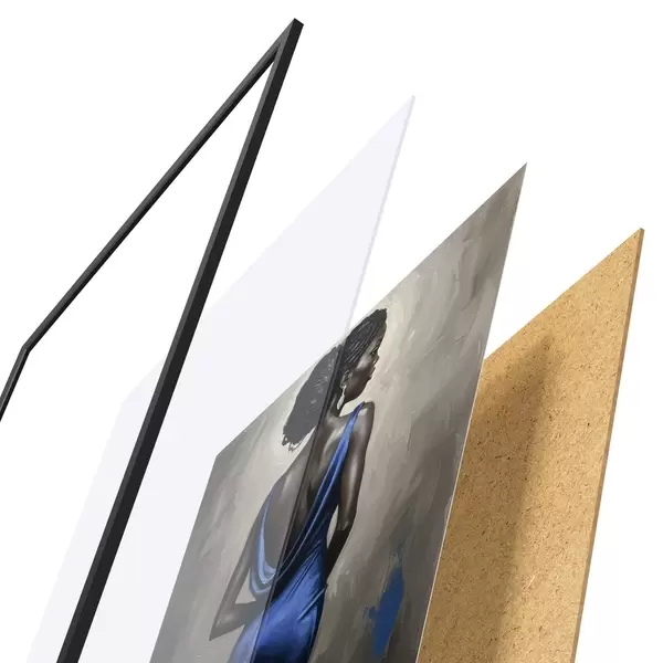 Plagát sa skladá z rámu, plexiskla, vytlačeného obrazu a podkladu z drevotriesky. Plagát možno okamžite zavesiť na stenu vďaka úchytom na zadnej strane.