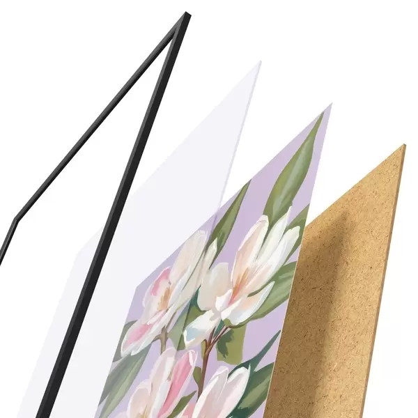 Plagát sa skladá z rámu, plexiskla, vytlačeného obrazu a podkladu z drevotriesky. Plagát možno okamžite zavesiť na stenu vďaka úchytom na zadnej strane.
