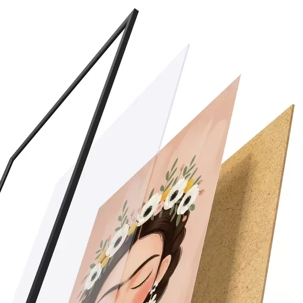 Plagát sa skladá z rámu, plexiskla, vytlačeného obrazu a podkladu z drevotriesky. Plagát možno okamžite zavesiť na stenu vďaka úchytom na zadnej strane.