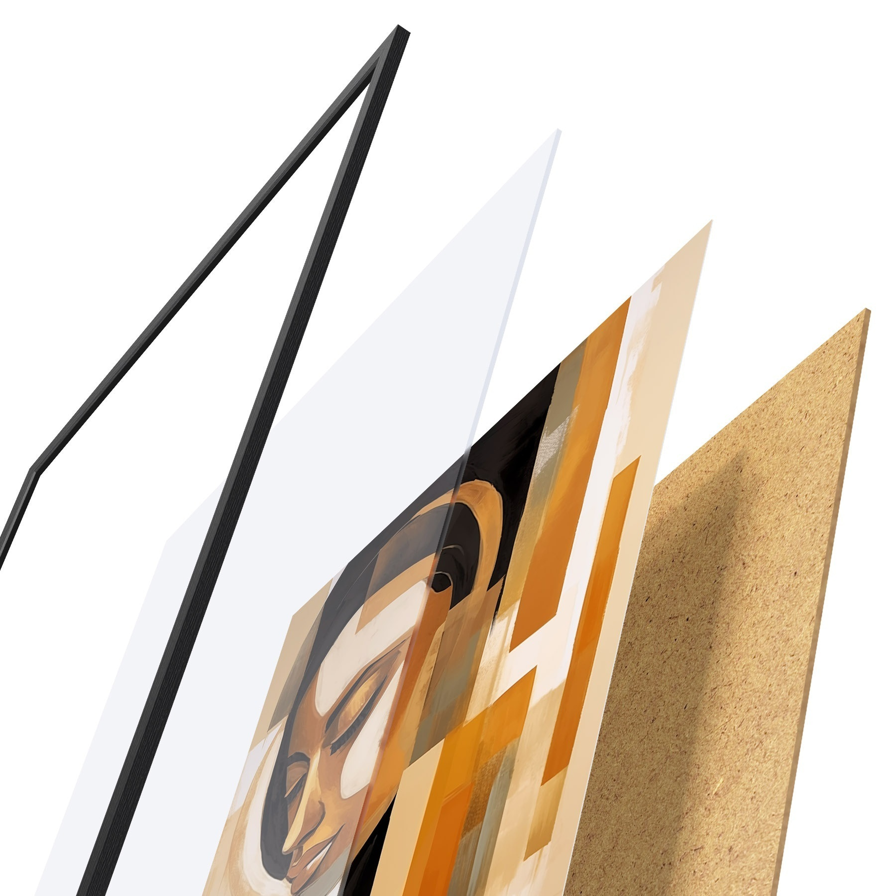 Plagát sa skladá z rámu, plexiskla, vytlačeného obrazu a podkladu z drevotriesky. Plagát možno okamžite zavesiť na stenu vďaka úchytom na zadnej strane.