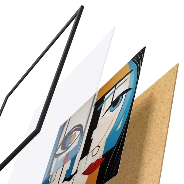 Plagát sa skladá z rámu, plexiskla, vytlačeného obrazu a podkladu z drevotriesky. Plagát možno okamžite zavesiť na stenu vďaka úchytom na zadnej strane.