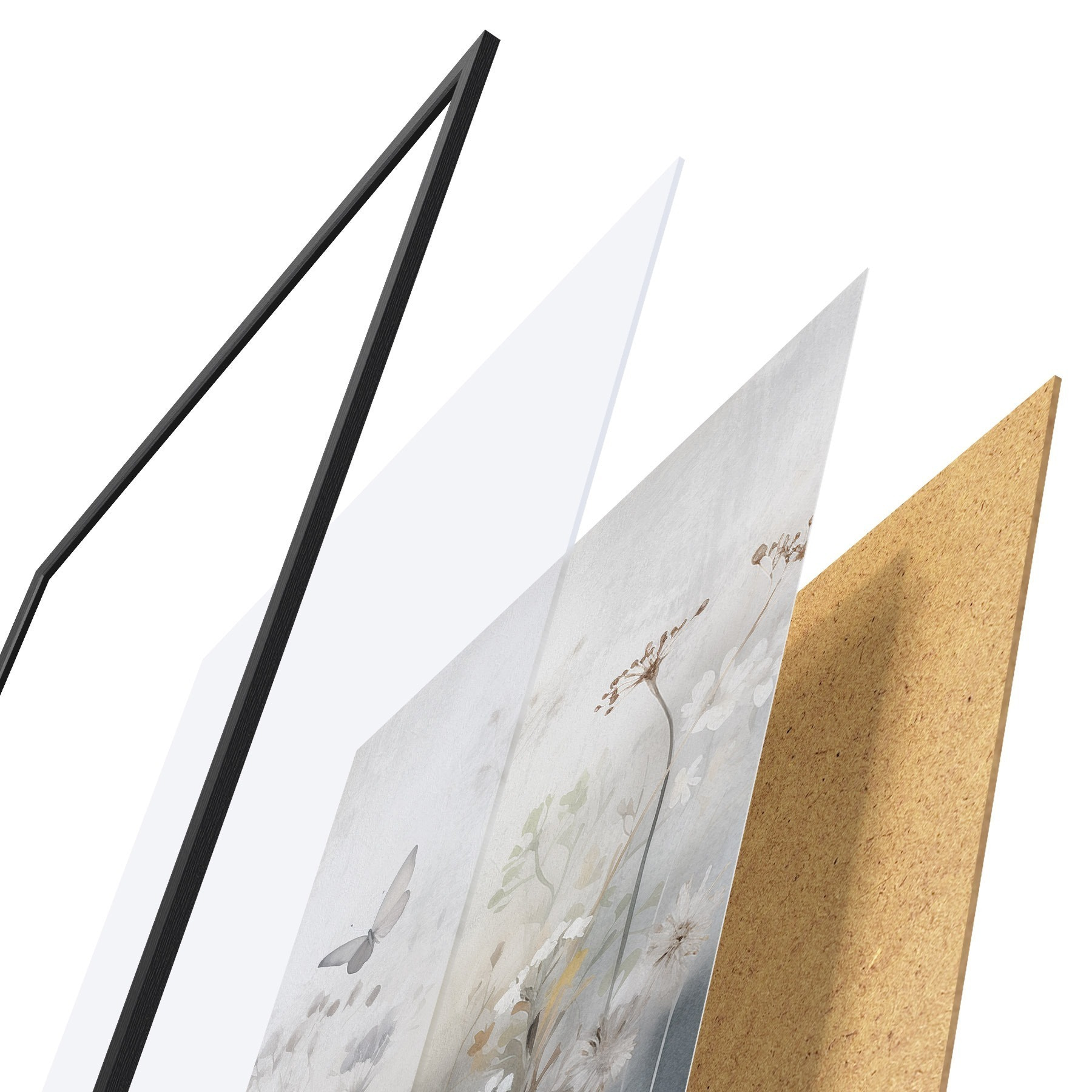 Plagát sa skladá z rámu, plexiskla, vytlačeného obrazu a podkladu z drevotriesky. Plagát možno okamžite zavesiť na stenu vďaka úchytom na zadnej strane.