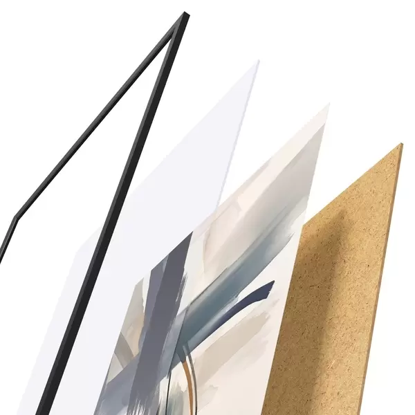 Plagát sa skladá z rámu, plexiskla, vytlačeného obrazu a podkladu z drevotriesky. Plagát možno okamžite zavesiť na stenu vďaka úchytom na zadnej strane.