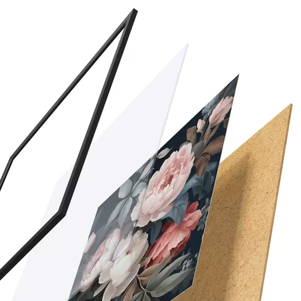 Plagát sa skladá z rámu, plexiskla, vytlačeného obrazu a podkladu z drevotriesky. Plagát možno okamžite zavesiť na stenu vďaka úchytom na zadnej strane.