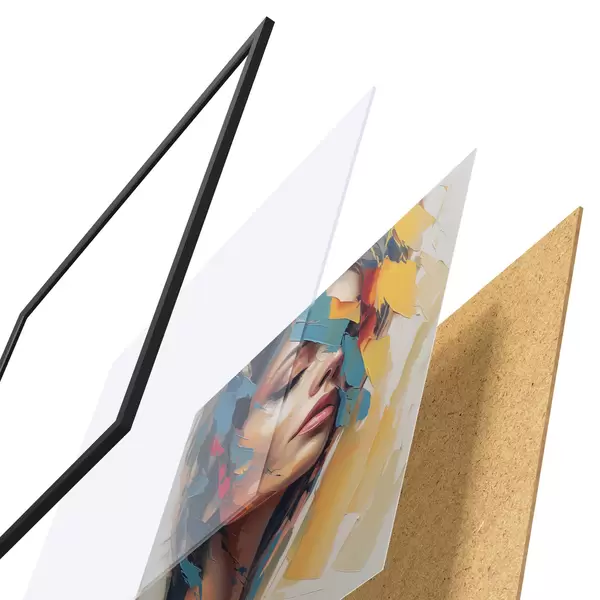 Plagát sa skladá z rámu, plexiskla, vytlačeného obrazu a podkladu z drevotriesky. Plagát možno okamžite zavesiť na stenu vďaka úchytom na zadnej strane.