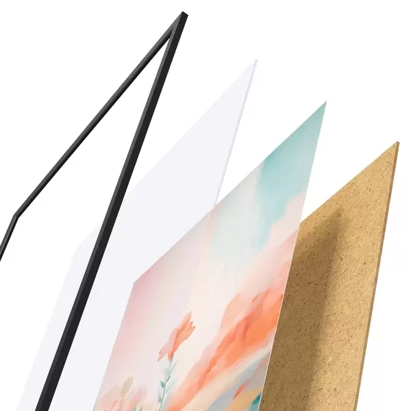 Plagát sa skladá z rámu, plexiskla, vytlačeného obrazu a podkladu z drevotriesky. Plagát možno okamžite zavesiť na stenu vďaka úchytom na zadnej strane.