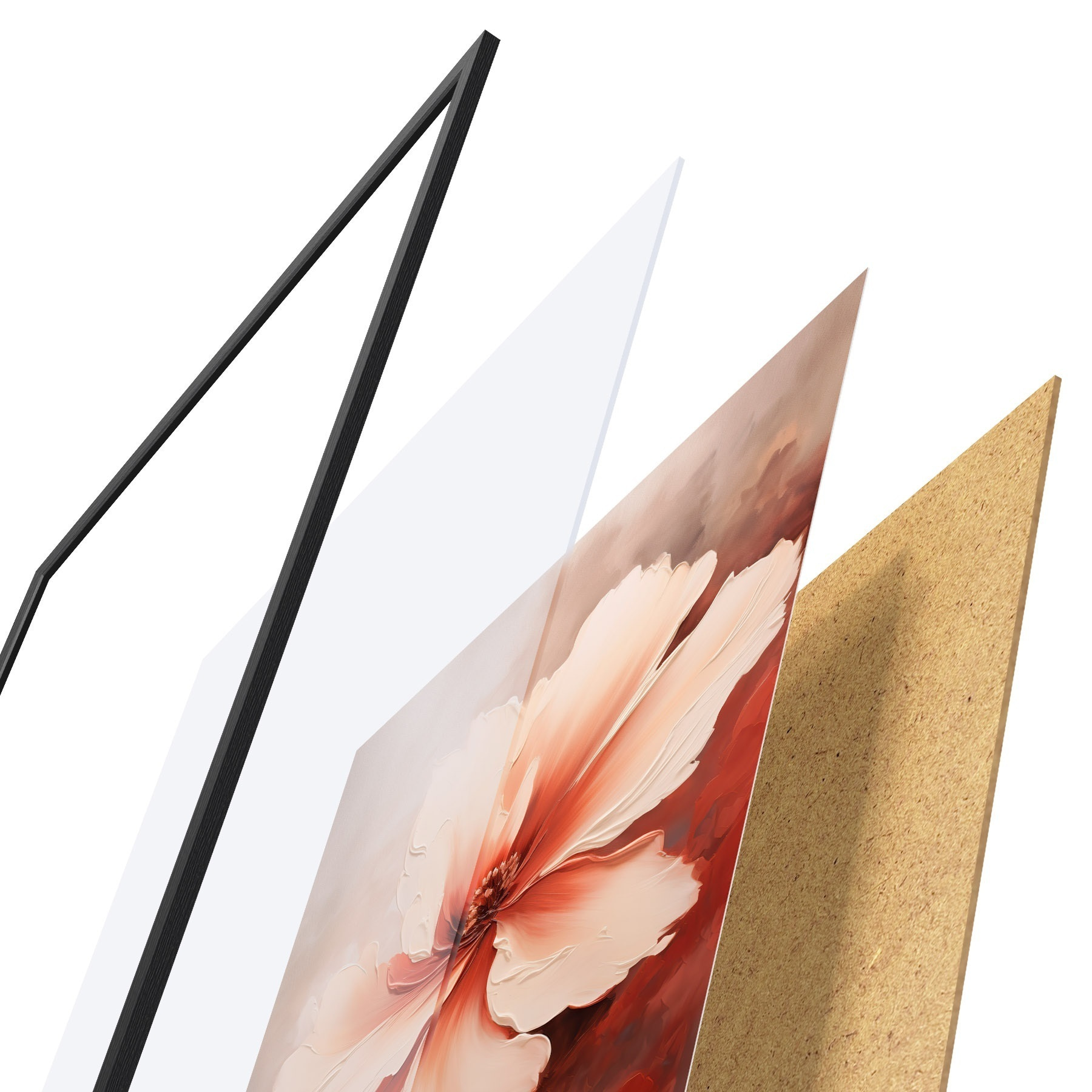 Plagát sa skladá z rámu, plexiskla, vytlačeného obrazu a podkladu z drevotriesky. Plagát možno okamžite zavesiť na stenu vďaka úchytom na zadnej strane.