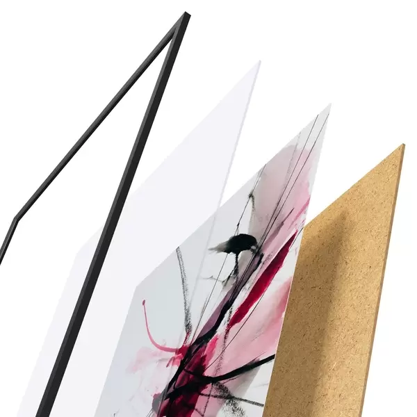 Plagát sa skladá z rámu, plexiskla, vytlačeného obrazu a podkladu z drevotriesky. Plagát možno okamžite zavesiť na stenu vďaka úchytom na zadnej strane.