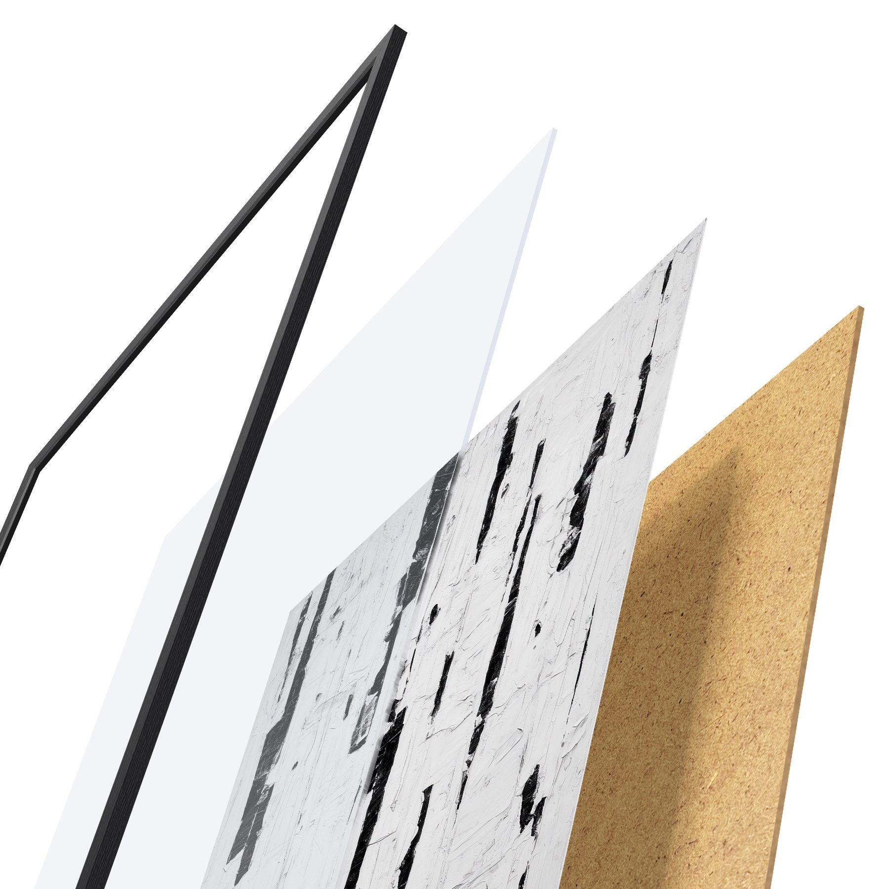 Plagát sa skladá z rámu, plexiskla, vytlačeného obrazu a podkladu z drevotriesky. Plagát možno okamžite zavesiť na stenu vďaka úchytom na zadnej strane.