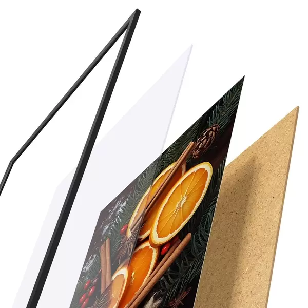 Plagát sa skladá z rámu, plexiskla, vytlačeného obrazu a podkladu z drevotriesky. Plagát možno okamžite zavesiť na stenu vďaka úchytom na zadnej strane.