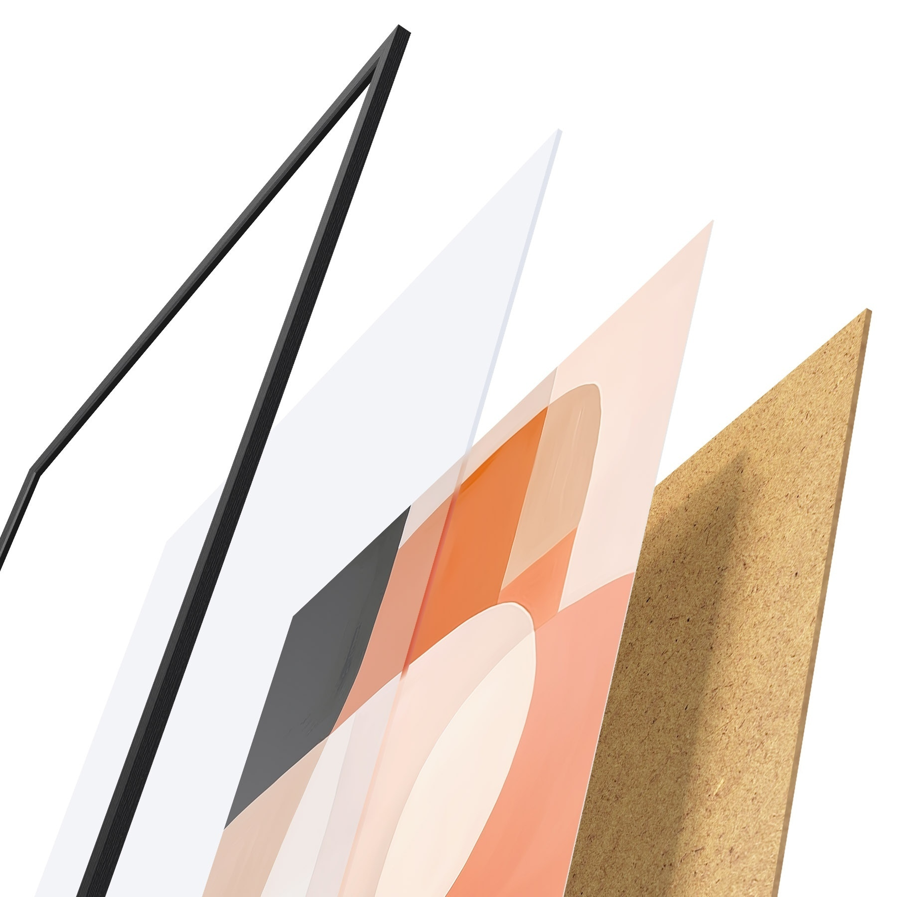 Plagát sa skladá z rámu, plexiskla, vytlačeného obrazu a podkladu z drevotriesky. Plagát možno okamžite zavesiť na stenu vďaka úchytom na zadnej strane.