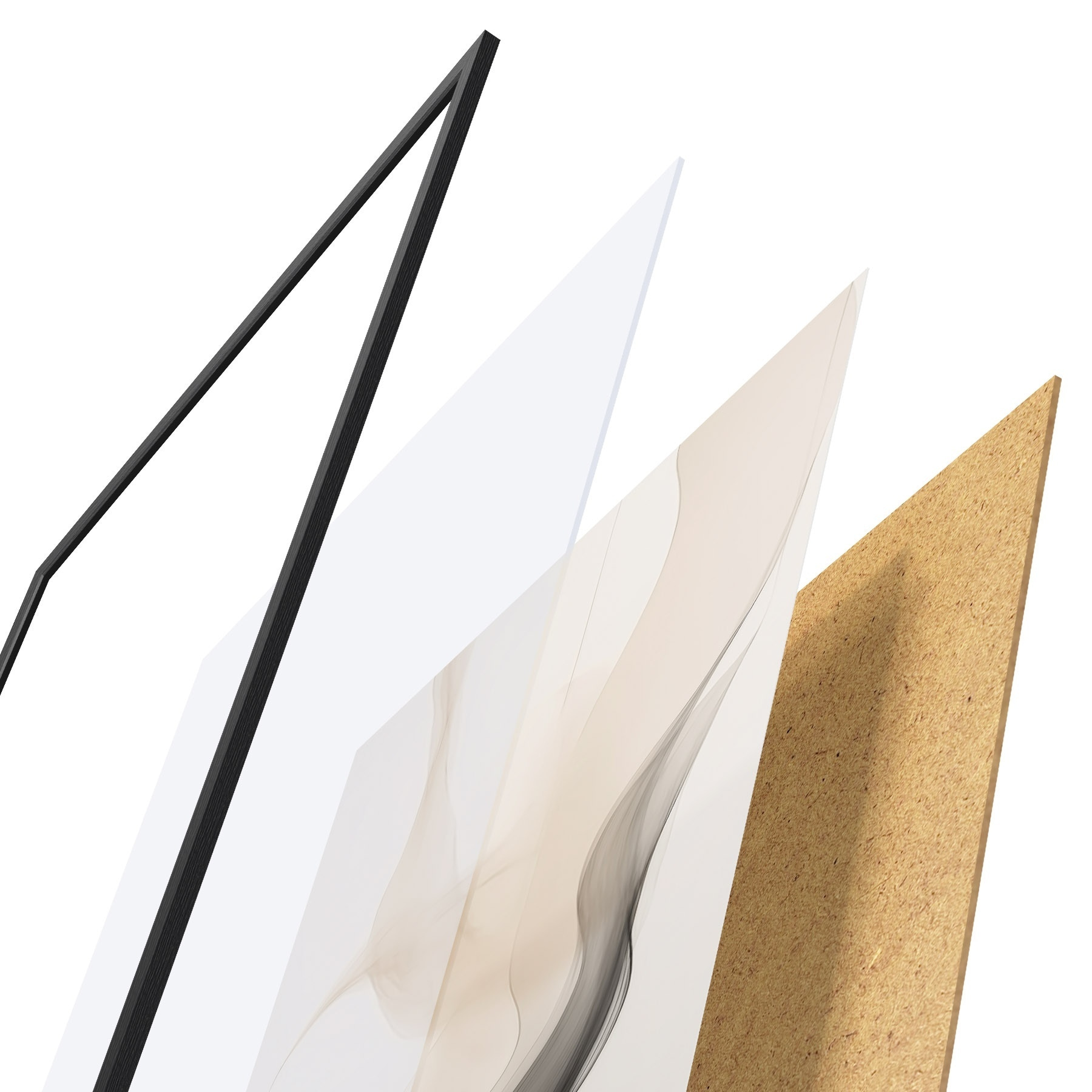 Plagát sa skladá z rámu, plexiskla, vytlačeného obrazu a podkladu z drevotriesky. Plagát možno okamžite zavesiť na stenu vďaka úchytom na zadnej strane.