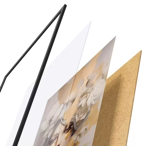 Plagát sa skladá z rámu, plexiskla, vytlačeného obrazu a podkladu z drevotriesky. Plagát možno okamžite zavesiť na stenu vďaka úchytom na zadnej strane.