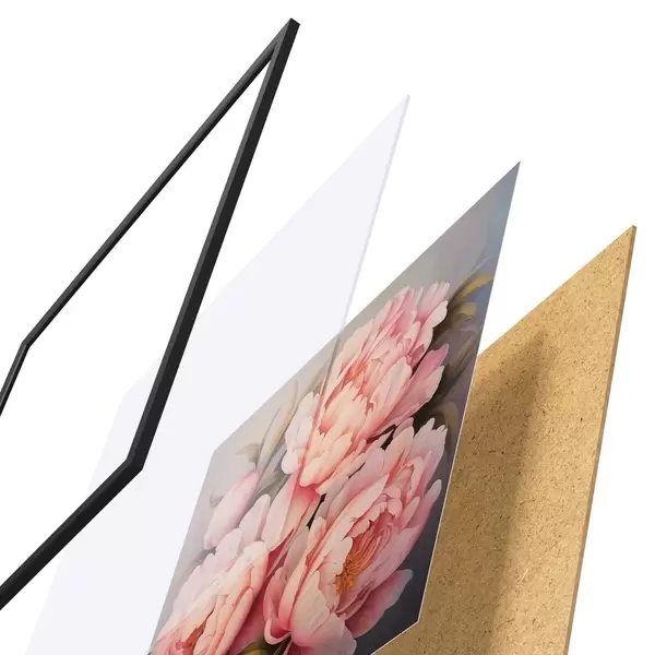 Plagát sa skladá z rámu, plexiskla, vytlačeného obrazu a podkladu z drevotriesky. Plagát možno okamžite zavesiť na stenu vďaka úchytom na zadnej strane.