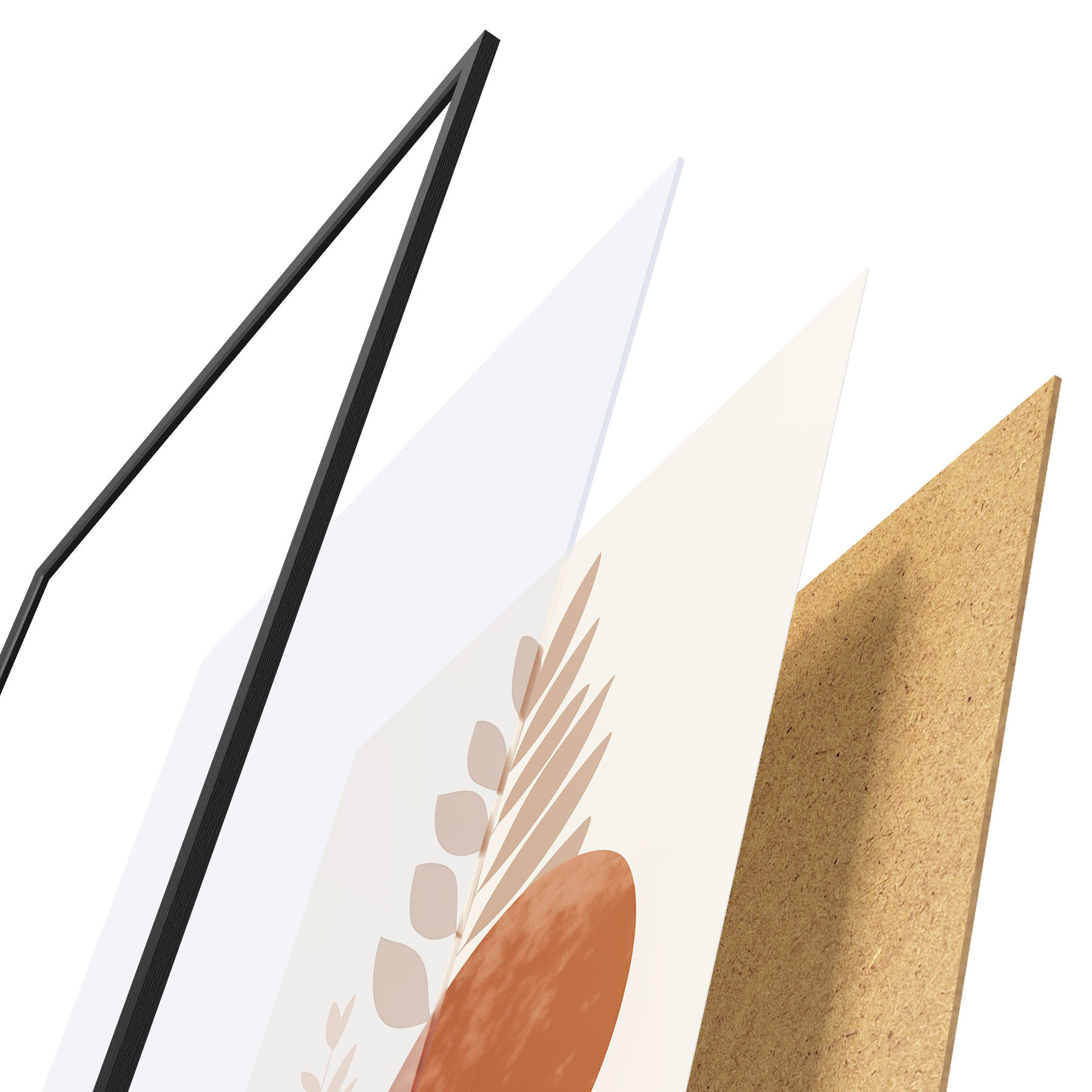 Plagát sa skladá z rámu, plexiskla, vytlačeného obrazu a podkladu z drevotriesky. Plagát možno okamžite zavesiť na stenu vďaka úchytom na zadnej strane.