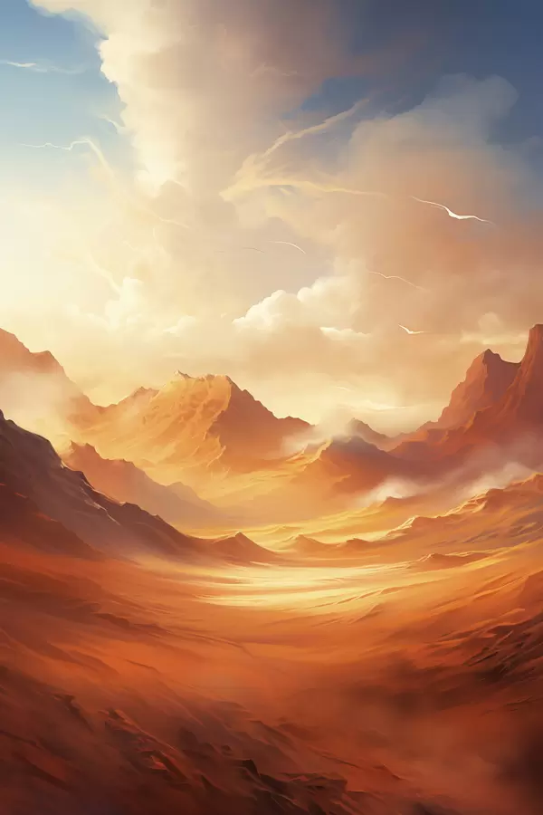 Úvodná stránkaKatalóg plagátovPlagaty prírodaPlagáty Rozľahlá oranžová púštna krajina s vysokými skalnatými horami pod zamračenou, slnkom osvetlenou oblohou s riedkymi mrakmi. Nr f47028