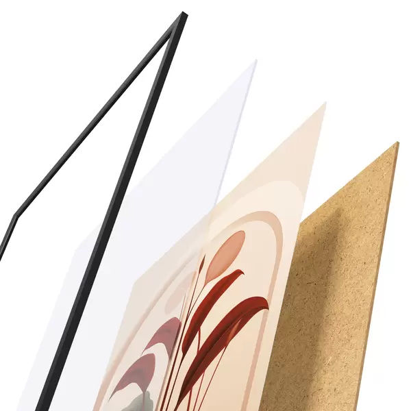 Plagát sa skladá z rámu, plexiskla, vytlačeného obrazu a podkladu z drevotriesky. Plagát možno okamžite zavesiť na stenu vďaka úchytom na zadnej strane.