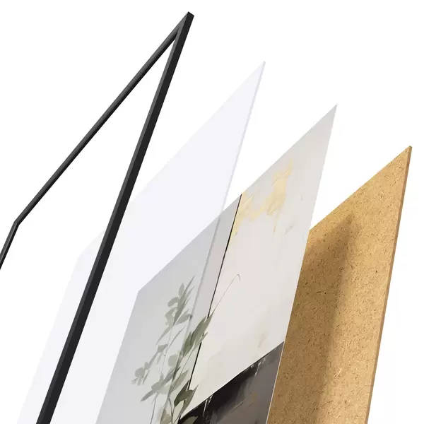 Plagát sa skladá z rámu, plexiskla, vytlačeného obrazu a podkladu z drevotriesky. Plagát možno okamžite zavesiť na stenu vďaka úchytom na zadnej strane.