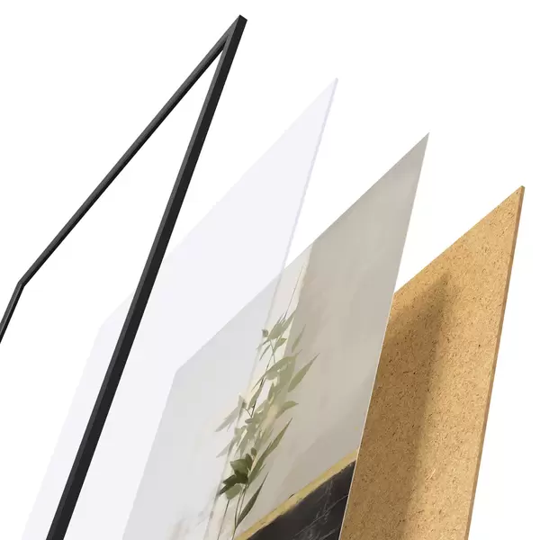 Plagát sa skladá z rámu, plexiskla, vytlačeného obrazu a podkladu z drevotriesky. Plagát možno okamžite zavesiť na stenu vďaka úchytom na zadnej strane.