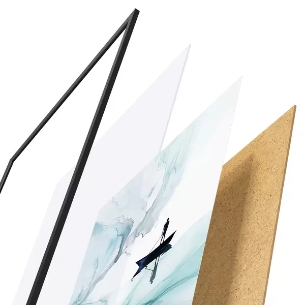 Plagát sa skladá z rámu, plexiskla, vytlačeného obrazu a podkladu z drevotriesky. Plagát možno okamžite zavesiť na stenu vďaka úchytom na zadnej strane.