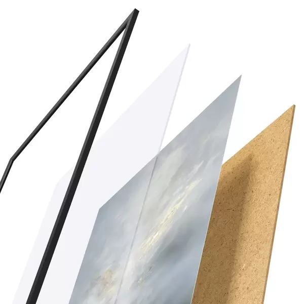 Plagát sa skladá z rámu, plexiskla, vytlačeného obrazu a podkladu z drevotriesky. Plagát možno okamžite zavesiť na stenu vďaka úchytom na zadnej strane.
