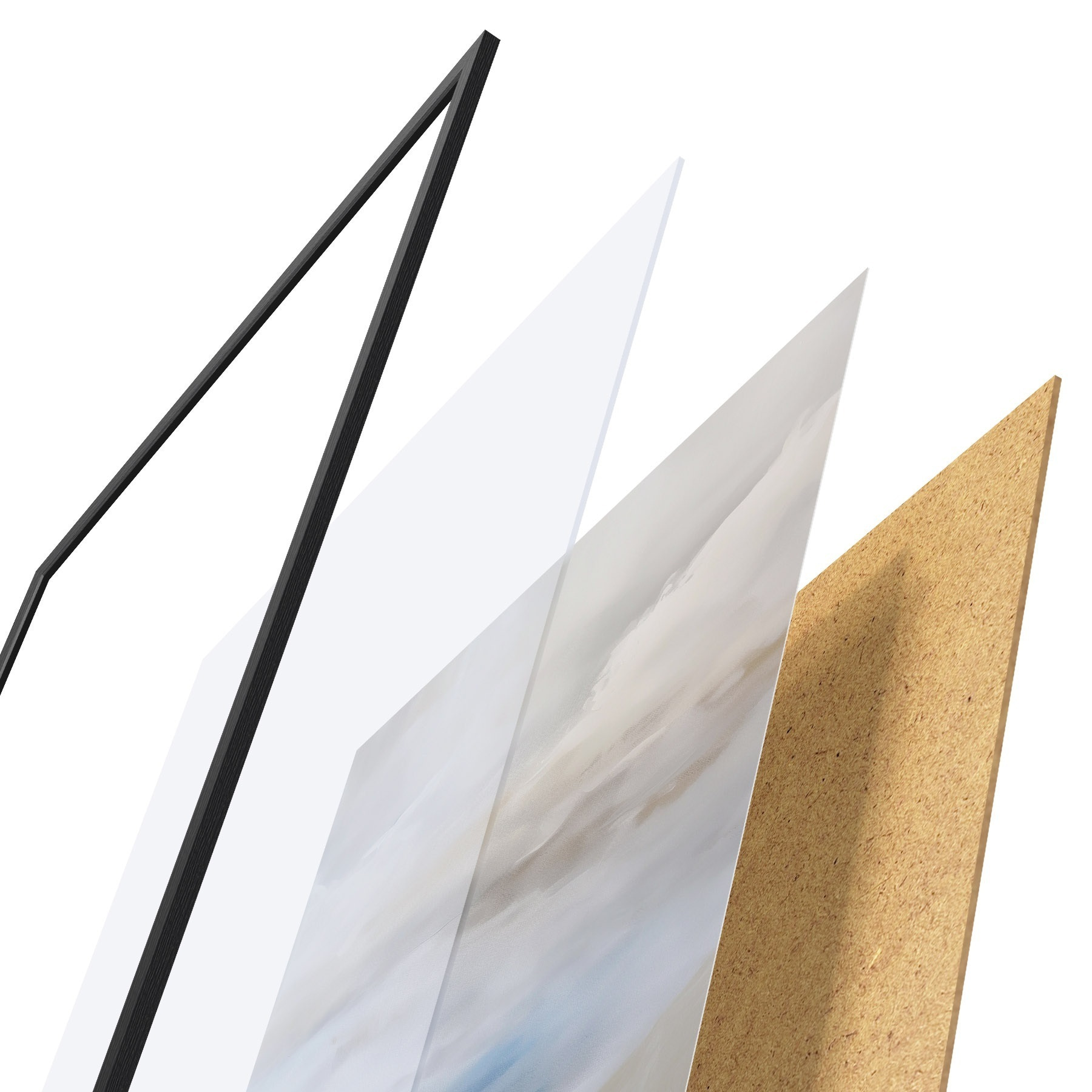 Plagát sa skladá z rámu, plexiskla, vytlačeného obrazu a podkladu z drevotriesky. Plagát možno okamžite zavesiť na stenu vďaka úchytom na zadnej strane.