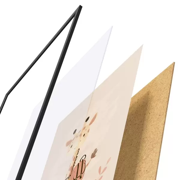 Plagát sa skladá z rámu, plexiskla, vytlačeného obrazu a podkladu z drevotriesky. Plagát možno okamžite zavesiť na stenu vďaka úchytom na zadnej strane.