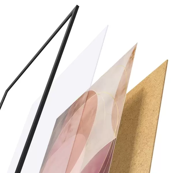 Plagát sa skladá z rámu, plexiskla, vytlačeného obrazu a podkladu z drevotriesky. Plagát možno okamžite zavesiť na stenu vďaka úchytom na zadnej strane.