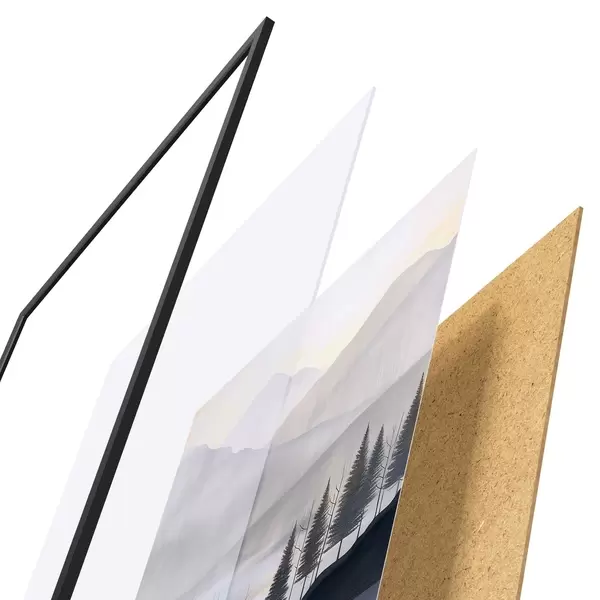 Plagát sa skladá z rámu, plexiskla, vytlačeného obrazu a podkladu z drevotriesky. Plagát možno okamžite zavesiť na stenu vďaka úchytom na zadnej strane.