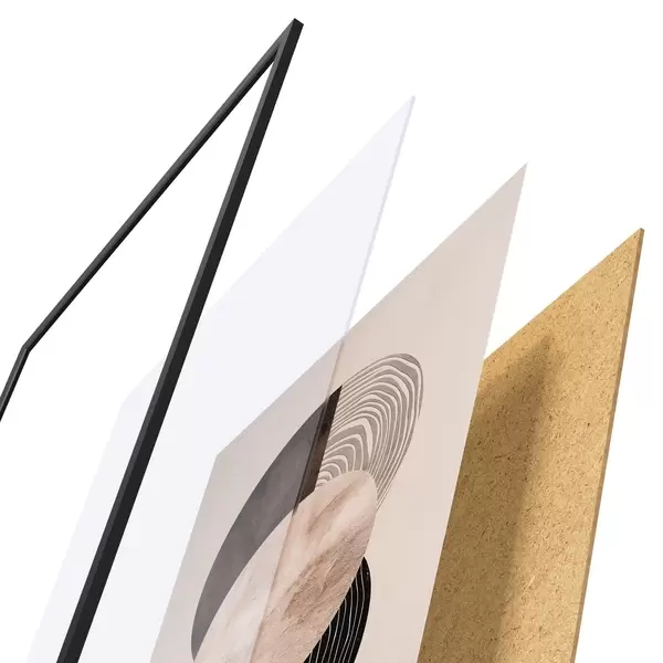 Plagát sa skladá z rámu, plexiskla, vytlačeného obrazu a podkladu z drevotriesky. Plagát možno okamžite zavesiť na stenu vďaka úchytom na zadnej strane.