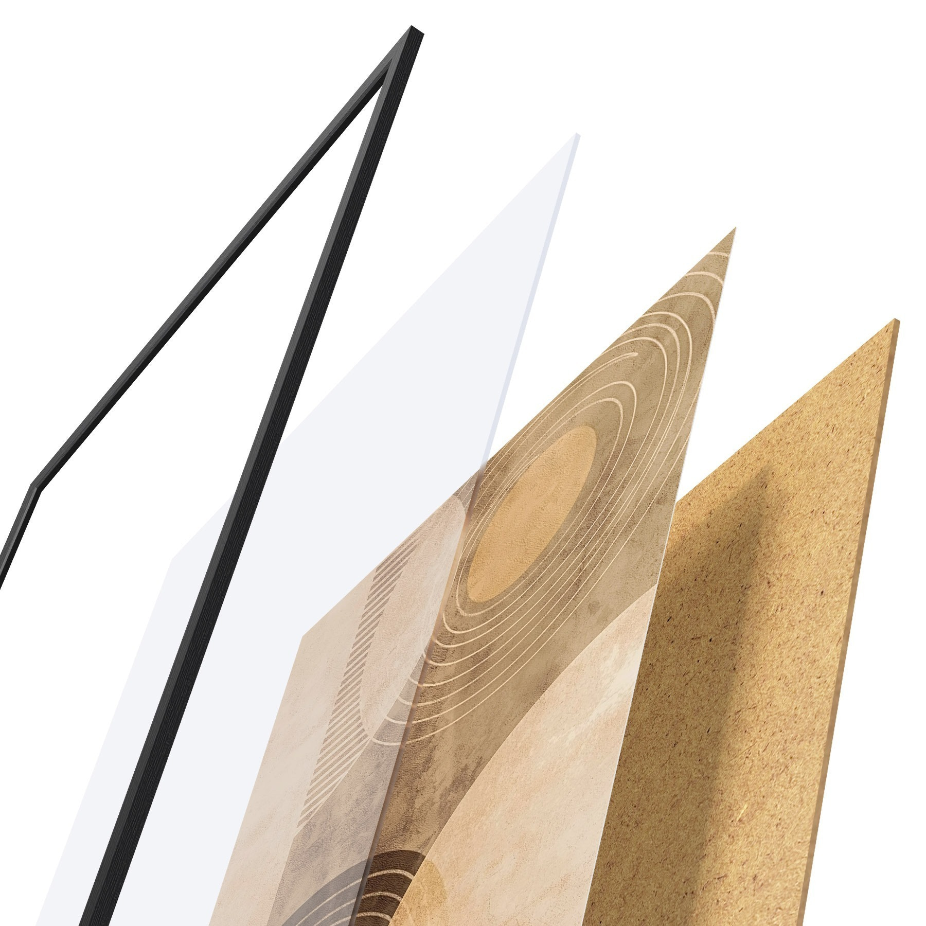 Plagát sa skladá z rámu, plexiskla, vytlačeného obrazu a podkladu z drevotriesky. Plagát možno okamžite zavesiť na stenu vďaka úchytom na zadnej strane.