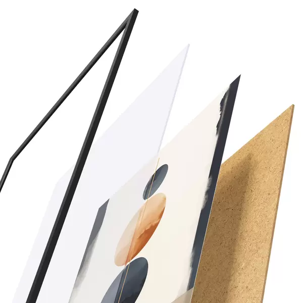 Plagát sa skladá z rámu, plexiskla, vytlačeného obrazu a podkladu z drevotriesky. Plagát možno okamžite zavesiť na stenu vďaka úchytom na zadnej strane.