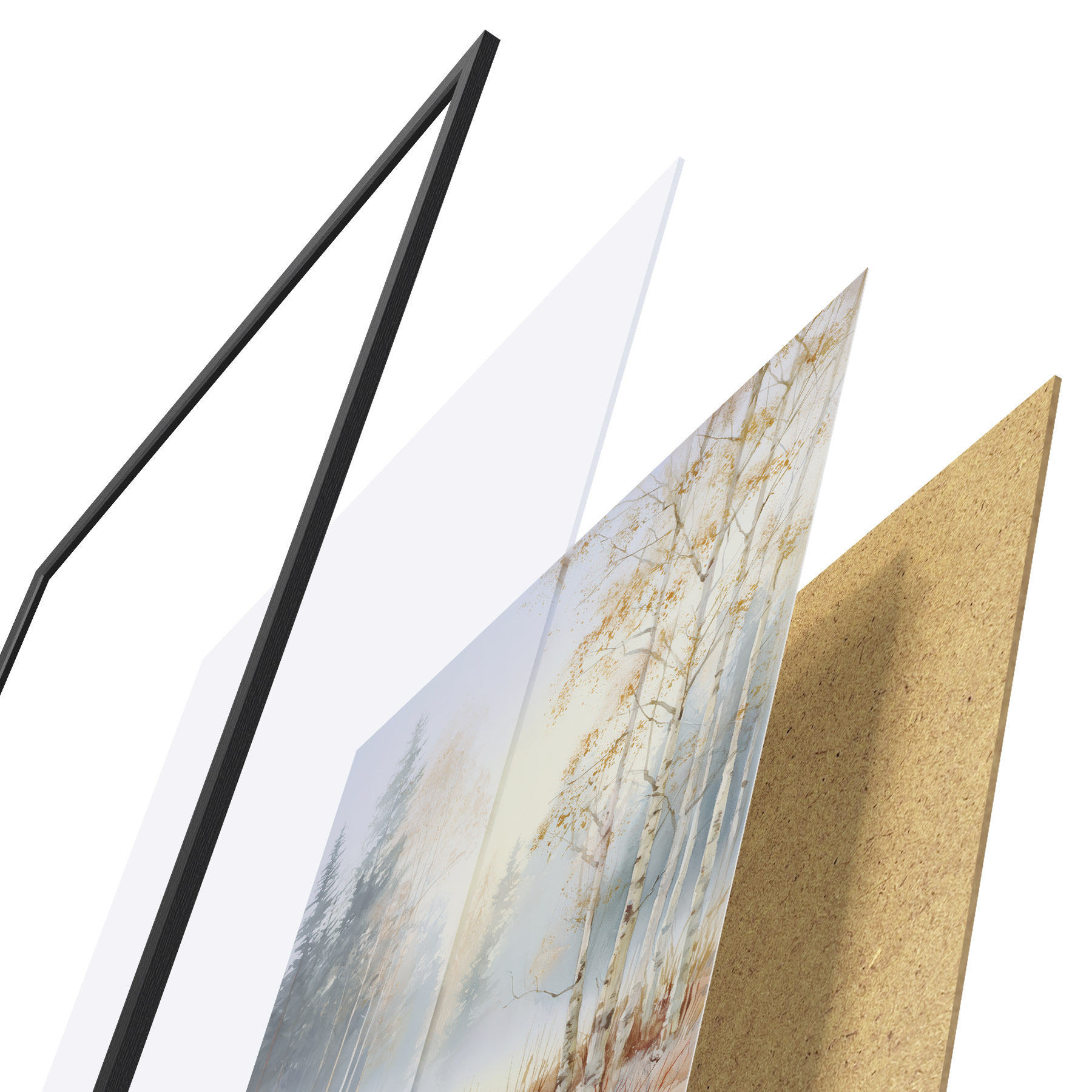 Plagát sa skladá z rámu, plexiskla, vytlačeného obrazu a podkladu z drevotriesky. Plagát možno okamžite zavesiť na stenu vďaka úchytom na zadnej strane.